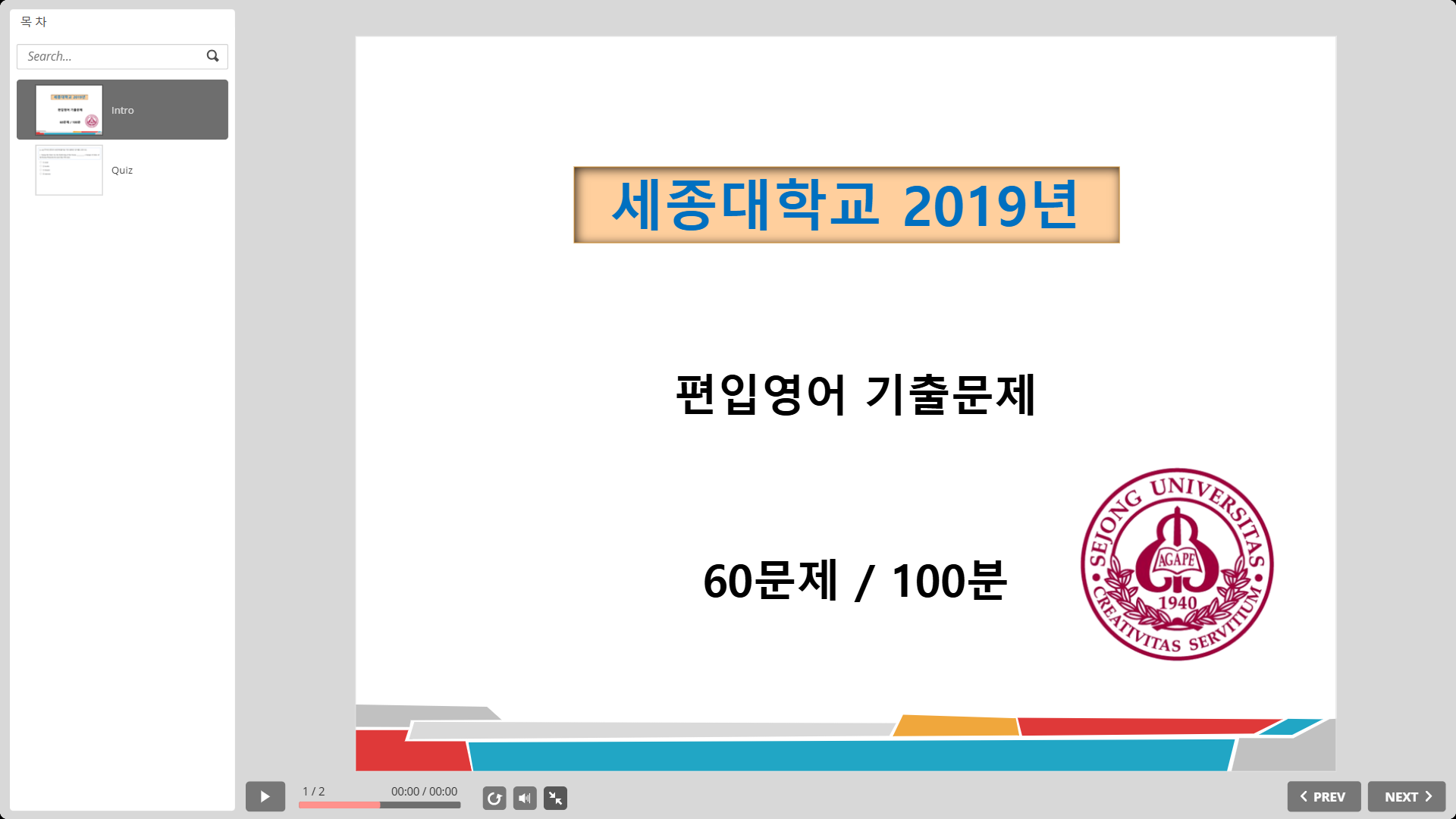 2023년 세종대 편입영어 기출문제 - Sample