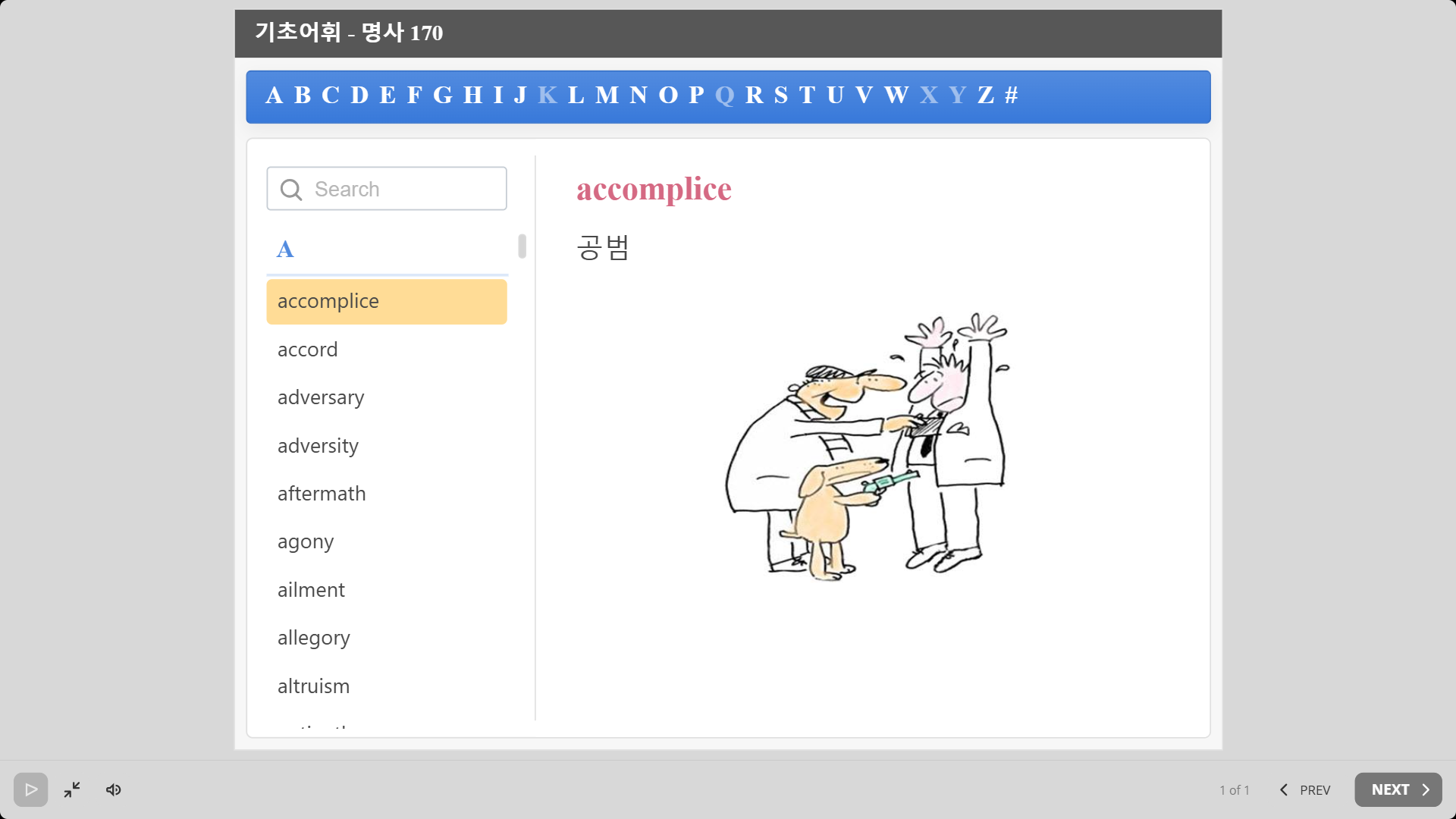 시작하는 편입 수험생을 위한 필수 영단어로서, ① 동사 490 ② 형용사 400 ③ 명사 170 으로 구성된 “편입영어 단어 기초 1060개” 를 그림과 음성으로 학습을 하고, 각 단어와 의미를 짝맞추기하는 테스트로 피드백을 합니다.